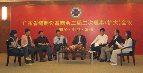 利用廣東省縫制設備商會二屆二次理事會議召開的契機,商會邀請了有關的嘉賓舉行了一個關于市場發展的論壇。舉辦這個論壇的主要目的是為了讓大家能對現階段的市場趨勢從各角度開展分析。總結各自企業是如何渡過金融危機,正確看待開春以來市場的迅速回暖的內因。通過這樣的交流對話,互通觀點,希望能讓行業人士更清晰、理性的看待當下的各種現象。