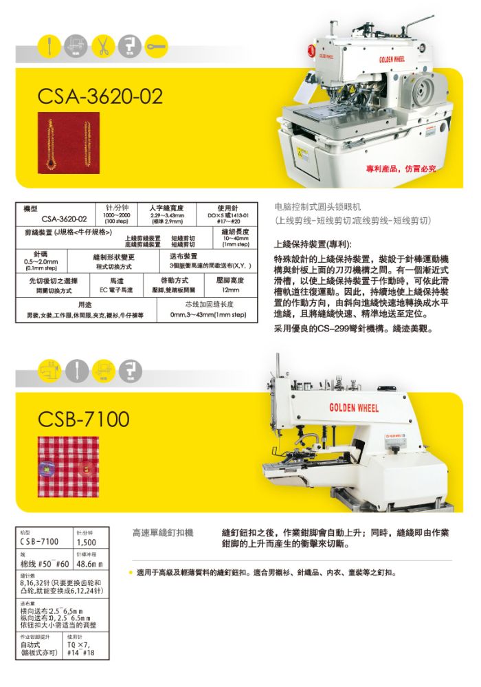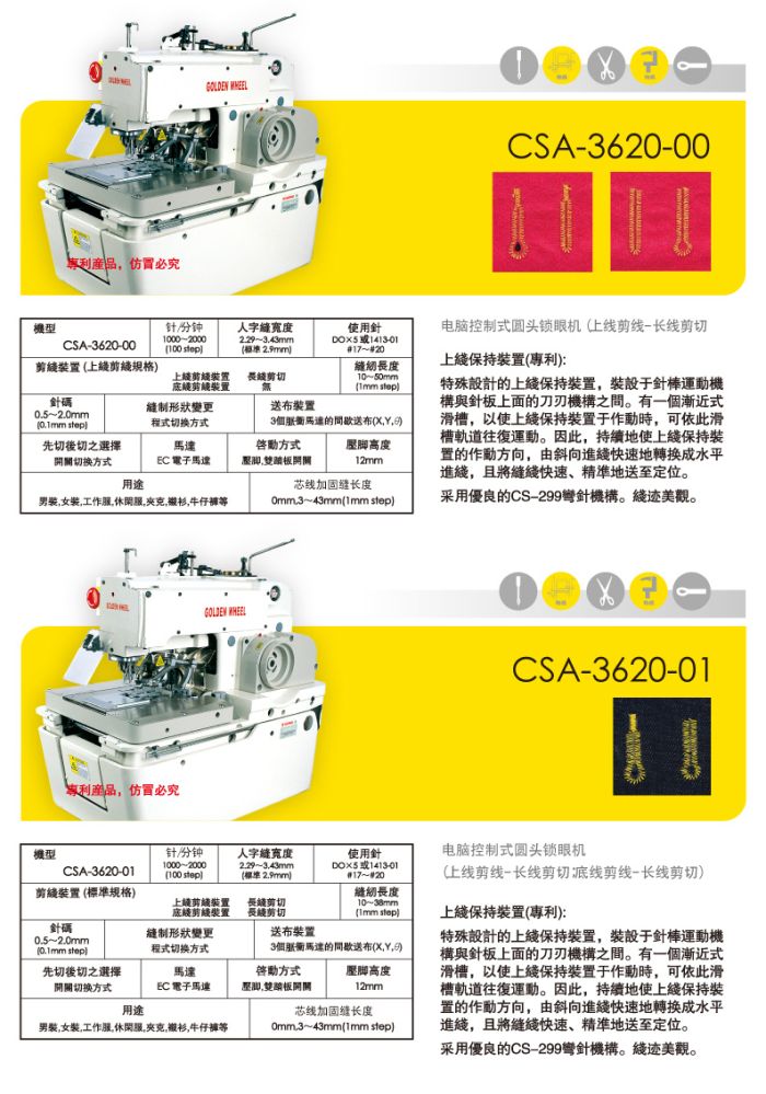 鎖眼機CSA-3620-00 / CSA-3620-01 / CSA-3620-02