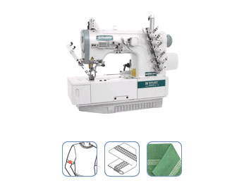 本機型為環縫平車之基本機種,可裝配多種輔助件進行多功能之縫合,適合內衣褲、運動衫接縫或下擺車縫。