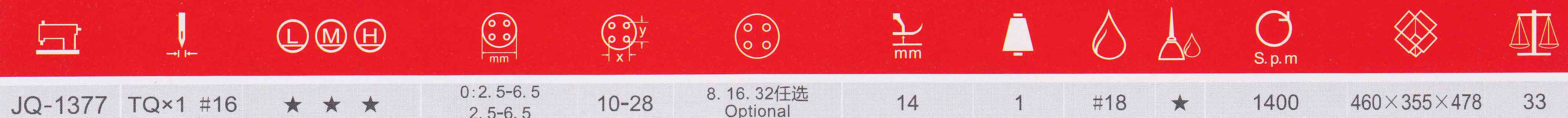 主要用于二孔或四孔的平扣縫釘,若加附具,可縫釘帶柄及其他紐扣,適用于輕薄中厚面料的釘扣。