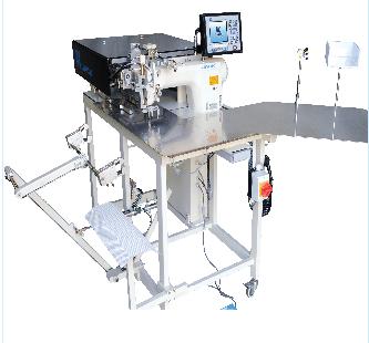 JK-T5878-58B全自動門襟機采用全球首創機頭移動結構,一次性完成T恤門襟關鍵工藝的縫制和裁剪,有效減少門襟底部起皺現象,特別適合縫制各種男女款T恤的明筒、暗筒和裝飾筒,帶條紋或不帶條紋的布料均可縫紉。產量高達2400-2800個/8小時。