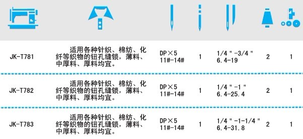 JK-T781平頭鎖眼機系列適用于各種針織、棉紡、化纖等織物的鈕孔縫鎖,薄料,中厚料均宜。
