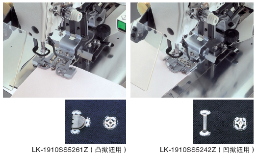 可由一名操作工交替操作一臺凸撳鈕用縫紉機和一臺凹撳鈕用縫紉機,提高了工作效率。