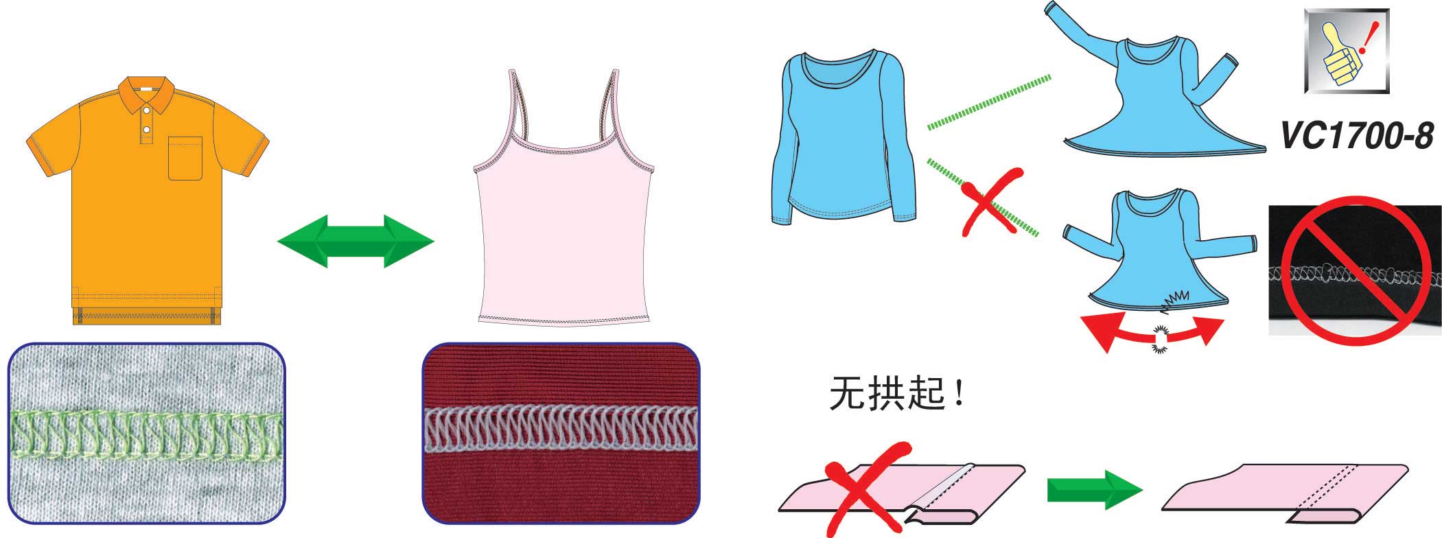 采用積極控線裝置,因此可以適用于更廣泛的縫制條件,可完美締造普通縫紉機難以做到的、從適合普通針織面料的緊固縫跡到超細纖維所要求的松柔縫跡之間的任何一種線跡。
