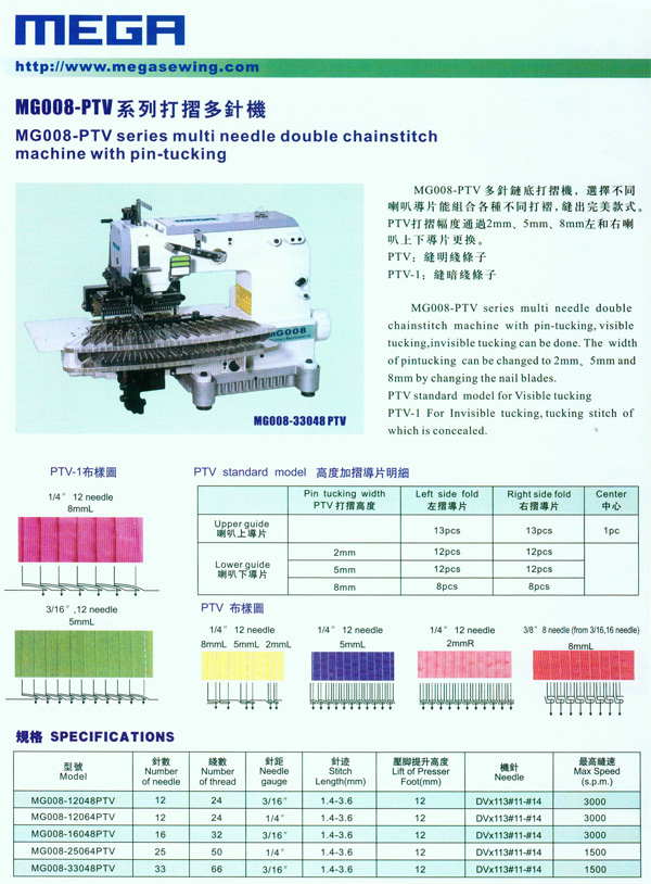 熱門產品: MG00-PTV系列打褶多針機   MG008-PSM系列打攬機   MG008-PQ系列松緊線縮摺機   MG008-38064PQSM系列松緊線縮摺打攬機   MG008-33048PQSM系列松緊線縮摺打攬機