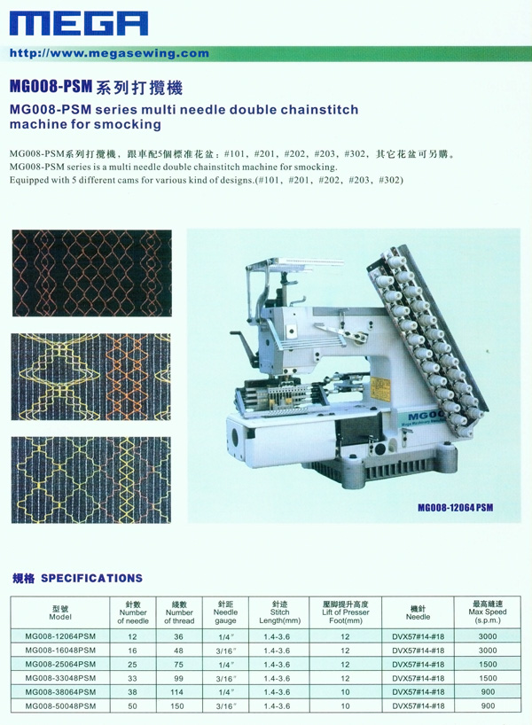 熱門產品: MG00-PTV系列打褶多針機   MG008-PSM系列打攬機   MG008-PQ系列松緊線縮摺機   MG008-38064PQSM系列松緊線縮摺打攬機   MG008-33048PQSM系列松緊線縮摺打攬機