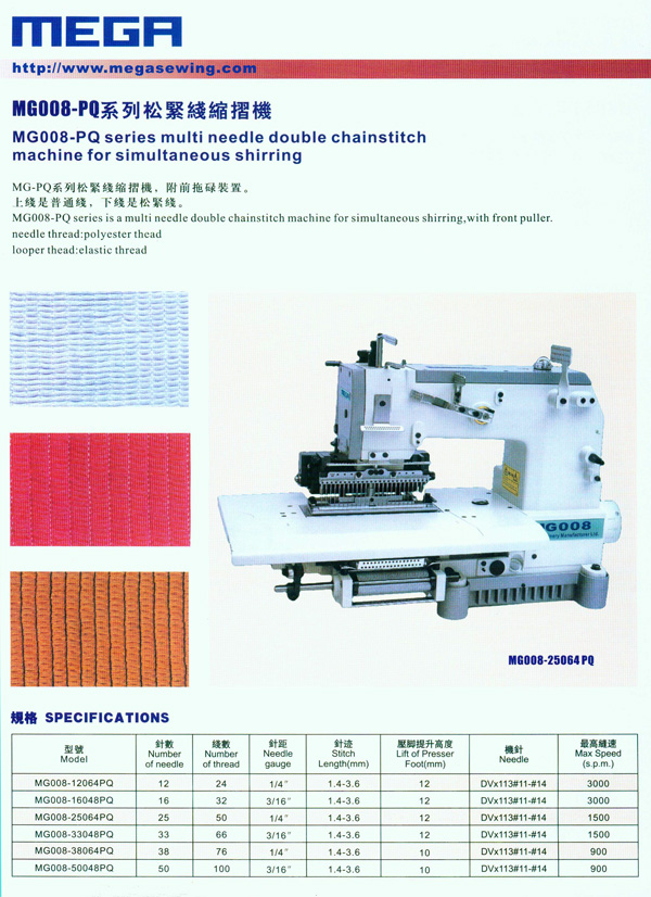 熱門產品: MG00-PTV系列打褶多針機   MG008-PSM系列打攬機   MG008-PQ系列松緊線縮摺機   MG008-38064PQSM系列松緊線縮摺打攬機   MG008-33048PQSM系列松緊線縮摺打攬機