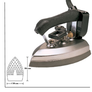 手撥式蒸氣開關掣 最適用於梳織及人造絲衣物 輕鋁合金底盤 熨斗重量6磅 自動?a溫最高溫度可達180°C 發熱線功率1000瓦 底盤噴氣孔特多,蒸氣量大