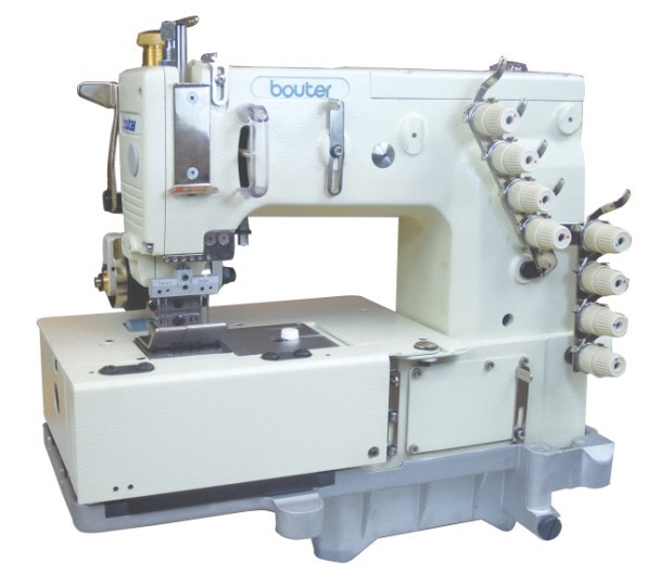 該機型彎針橫向運動機構使它能從中厚料到厚料使用,牛仔的卷邊縫,上腰,上松緊等廣范圍使用,獨自開發的后拖輪能保證高速運轉時送布均衡,線跡美觀。
