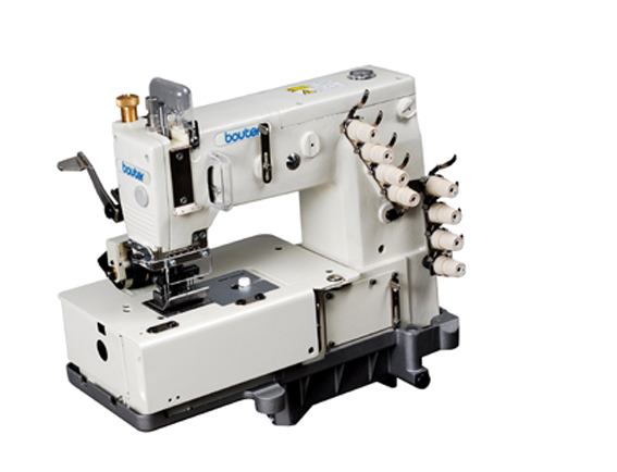 該機型彎針橫向運動機構使它能從中厚料到厚料使用,牛仔的卷邊縫,上腰,上松緊等廣范圍使用,獨自開發的后拖輪能保證高速運轉時送布均衡,線跡美觀。