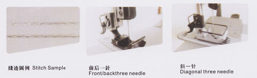 該機(jī)造型穩(wěn)得美觀,操作空間大。采用針桿挑線、彎針勾線,形成三針線跡,線跡美觀挺直,富有彈性,適用于不同縫線和面料的縫紉作業(yè),如中平布,卡其布和牛仔布料等,縫制效果好。并配備各種規(guī)格的尺寸針位產(chǎn)品可供選擇。