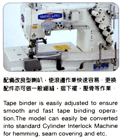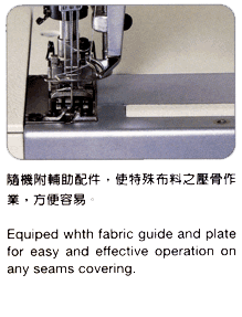 熱門產品: 手臂型兩面裝飾四針六線雙切繃縫機(SL-700)   三合一多功能平床型高速三針綳縫機(FG-666-FQ)   平床型高速三針綳縫機(FG-666-EST)   雙面飾筒型三針綳縫機(FW-777)   縱筒型三針五線雙面飾綳縫機(FW-777-603)