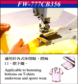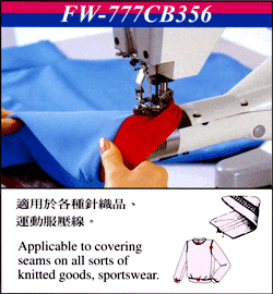 熱門產品: 手臂型兩面裝飾四針六線雙切繃縫機(SL-700)   三合一多功能平床型高速三針綳縫機(FG-666-FQ)   平床型高速三針綳縫機(FG-666-EST)   雙面飾筒型三針綳縫機(FW-777)   縱筒型三針五線雙面飾綳縫機(FW-777-603)