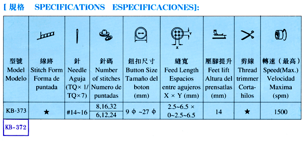 • "適用縫制雙孔、四孔、或按式鈕扣至襯衫、西服衣褲、外套、工作服...等