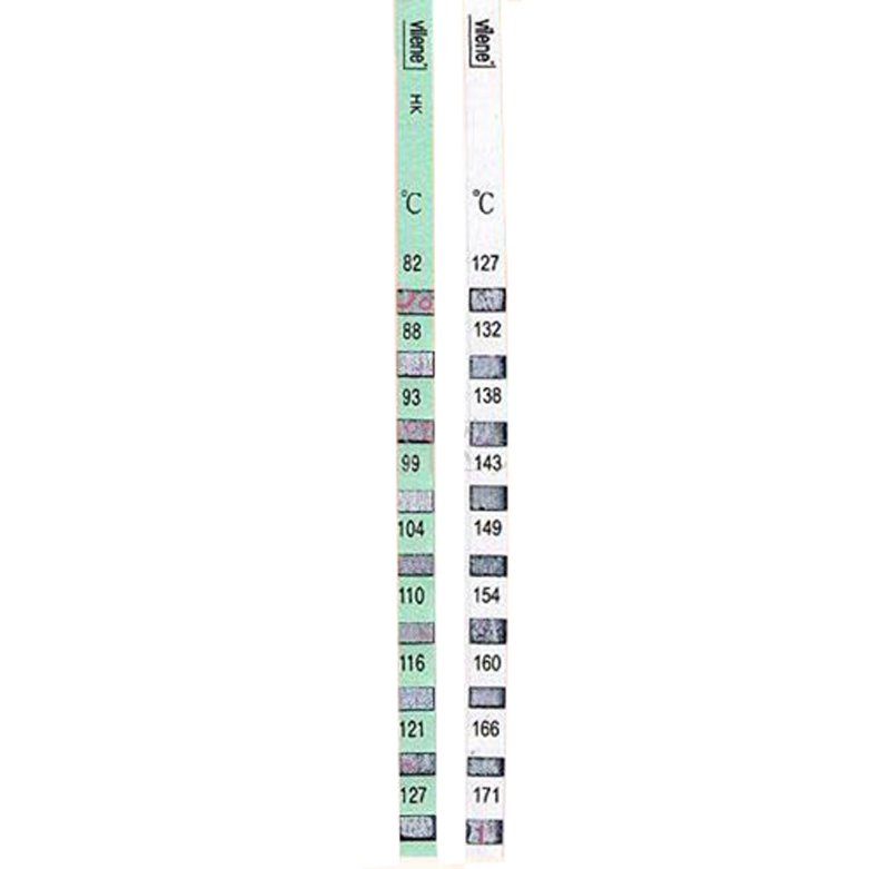 采用溫度測量的新概念,在小型貼紙上有一列方格代表不同的溫度值,當溫度上升至該溫度點時,方格會轉變成黑色,溫度降低后也不會回復到原來的顏色,這樣便可知道物體曾經歷過的最高溫度,以及是否有超溫現象。