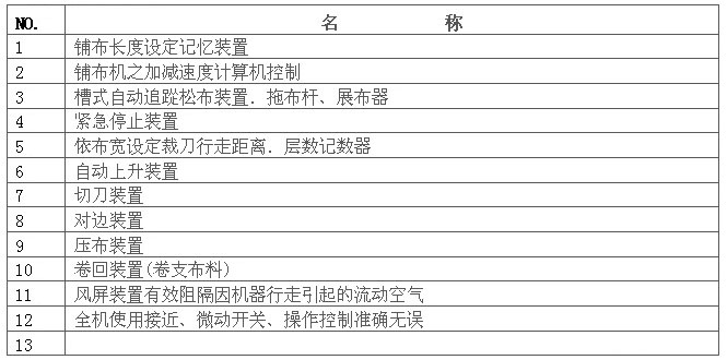 智能鋪布機(jī)標(biāo)準(zhǔn)配置: