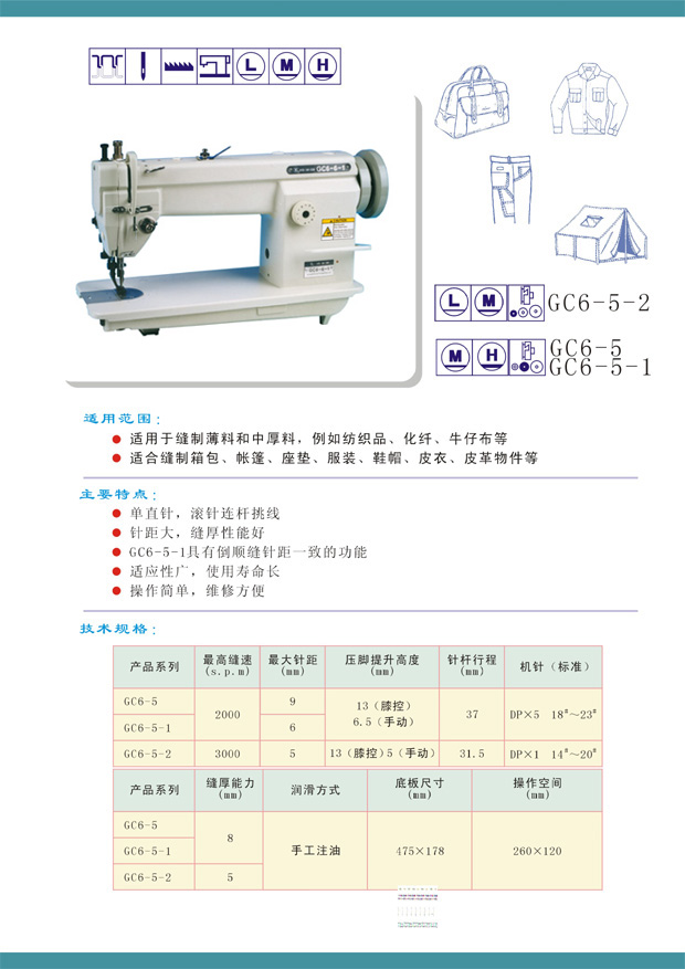 熱門產品: GC20606-1L18單針長臂綜合送料中厚料平縫機   GC202高速中厚料自動加油平縫機   GC201高速中厚料自動加油平縫機   GC201-D2高速中厚料自動加油自動剪線平縫機   GB2-1中厚料平縫機