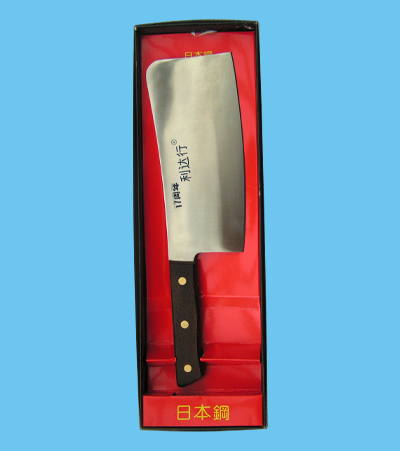 日本菜刀:采用手工夾鋼鍛打。刃口材料選用優質65Mn鋼材,精工細作,硬度高、刃口鋒利、耐磨性能好,且因夾鋼復合,鈍后便于修磨,是家庭、廚房之佳品。