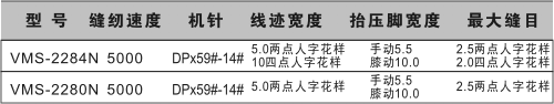 簡單的操控,即可隨意轉換成2點人字花樣之車縫或4點人字花樣之車縫,轉換簡易;具備2點、4點人字花樣之轉換功能,可適用于廣大范圍之縫制工程;采用旋梭驅動軸補償機構,可確保無故障與均勻一致的人字車縫;可簡易地調整人字縫寬度與縫目大小;適用于縫制內衣褲、緊身衣、襯裙、襯衣、褲裙等之產品。