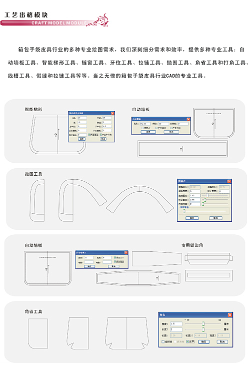 現(xiàn)在的紙格師傅大都是用刀,鉛筆,橡皮等工具來完成出格工作,在手工制做的過程中,修改,特殊的制作工藝,以及測量,切割紙格,效率低下,早已不適應(yīng)信息化時代的要求。手工做好的紙格給計算單用量、成本估算等數(shù)據(jù)采集帶來儲多不便,更不利于公司技術(shù)積累。 |
