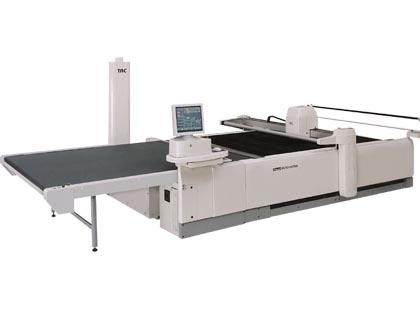 高速全自動裁床 TAC-N 獨特的TAC 優良設備和先進的CAM控制軟件,最大限度活用各種CAD設計的服裝數據,實現了高速度、高精度、高效率的自動切割。不但簡單方便,而且通過人機對話,實現了所做所想,是相當完善的柔性化系統. 使用優勢: 1、由于使用CAD數據自動剪裁布料而無需熟練技術人員 2、能夠改善裁剪精度、避免后續風致不會出現尺寸上的技術誤差 3、裁剪量穩定,能夠對應小批量以及交貨急的訂單 4、能夠保存各種裁剪數據,方便翻單、外發加工 5、能夠集中管理面料、減少庫存管理的損耗 6、裁剪操作安定、更趨簡單化 7、靜音設計、減少噪音,室外排氣、減少污染,改善工作環境 8、采用整體吸附方式-吸風功率大不漏風,節約用電 9、用電功率。畲鬄28Kw,節約電力 10、斂料臺皮帶傳送方式-減少摩擦,降低磨損,沒有噪音 11、擅長弧線-切割弧線、特殊線條時尤為突出 特點: 1、采用人機對話方式,使參數設定簡單方便 2、根據排氣閥控制吸引力,固定面料 3、吸引力的大小可根據面料的種類不同來調節 4、由于吸氣均勻一致,改善裁剪精度 5、裁剪好的部分,有塑料膜覆蓋,減少氣體泄漏,降低耗電量 6、有效切割范圍采用整體密封方式,一致性好 7、采用自動輪式磨刀石,磨出的刀口均勻一致 8、根據面料材質不同,可調節刀具的運轉速度,防止面料熱溶 9、計算機自動糾正面料的絲縷 10、刀口有四種類型可任意選擇 11、采用靜音設計,減少泄漏噪音,改善生產環境 12、集中排氣減少灰塵,改善生產環境 13、有自動糾錯提示功能,屏幕自動顯示技術事故 14、具有追加送料功能,裁剪與揀料同時進行,最大限度提高工作效率