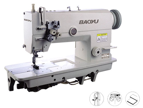 本機采用雙直針、立式自動加油旋梭勾錢,滑桿挑線,構成二行雙錢鎖式線跡。針桿采用機械式分離與聯合;上下軸采用滾珠軸承,同步齒形帶傳動,柱塞式油泵潤滑系統。采用針桿擺動與送布牙同步送料方式,旋鈕式標盤調節針距和杠桿式倒順送料機構。在梭芯內的縫線回拉彈簧,保證底線與面線得到一致的縫紉效果,適用縫制大衣、制服、牛仔服、包袋、裝飾縫等。 | |||||||||||||||||||||||||||||||||