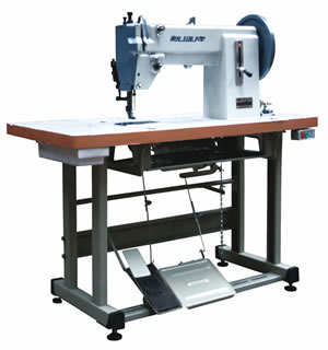 該機(jī)是具有上、下同步送料倒順特殊功能的機(jī)型,雙壓腳交叉升降、縫料上下層無位移,線跡均勻、美觀、倒順靈活、方便、可靠,進(jìn)一步提高了縫紉質(zhì)量。采用連桿機(jī)構(gòu),使主軸速度得以提高,下送料軸采用滑動軸承,整機(jī)運(yùn)轉(zhuǎn)平穩(wěn)、噪音小、壽命長、性能更加優(yōu)良。配有臥式機(jī)架。
