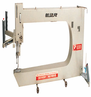 該機是一種大型專用的工業縫紉機,是成套電腦絎縫制品生產線的配套設備。采用旋梭、雙線鎖式線跡,大懸臂結構,主要用于絎縫各種膨松棉被及其花形。該機結構分為兩部分,機頭和絎架,絎架用于搭架各種規格的膨松棉被,機頭可以在絎架軌道上,前后、左右自由地移動。本機操作簡單、方便、省力,是一種高效率的工業縫紉機。