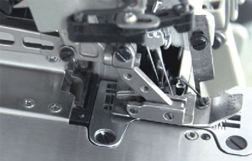 空氣吸入口設置于壓腳后側,利用空氣吸力將鎖縫線頭、寬幅縫線頭,二重環縫的鎖縫紉頭吸入后并切線。 |