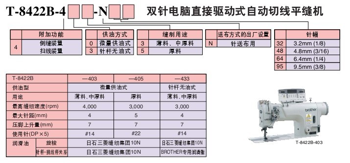 · 穩定的自動切線功能提高了工作效率。 · 無油污清潔縫制。 針桿無油式/微油式 用于女士內衣/薄·中厚面料/厚面料 最高縫紉速度:3,000-4,000 rpm 最大針距:4-5 mm 抬壓腳高度:7 mm 針送布/下送布為標準裝備 倒縫裝置&掃線裝置為標準裝備