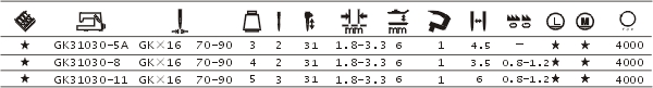 GK31030-5A型高速雙針滾領(lǐng)機縫厚能力強,并且裝有卷邊器和過帶裝置,能自動將長帶卷成上包下散的樣式,適用于針織內(nèi)衣單面繃縫滾領(lǐng)滾邊。 GK31030-8型高速雙針繃縫滾領(lǐng)機縫厚能力強,并且裝有卷邊器和過帶裝置,能自動將長帶卷成上包下散的樣式,適用于針織內(nèi)衣的雙面繃縫滾領(lǐng)滾邊。 GK31030-11型高速三針繃縫滾領(lǐng)機縫厚能力強,并且裝有卷邊器和過帶裝置,能自動將長帶卷成上包下散的樣式,適用于針織內(nèi)衣的三針雙面繃縫滾領(lǐng)滾邊。 |