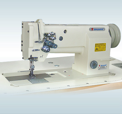 SF20606 雙針平縫機(jī)采用雙直針、雙立式大型自動加油旋梭勾線,滑竿挑線、構(gòu)成而行雙線鎖式線跡。上下軸用滾珠軸承支承,同步齒形帶傳動;柱塞式油泵潤滑系統(tǒng),采用了松料牙、針桿、壓腳等互相諧和送料的綜合性送料機(jī)構(gòu),故即使線跡較粗者及較長的縫料的縫制,也能正確自如地進(jìn)行。