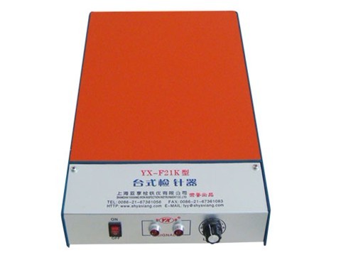 YX-F21K型臺式驗針機具備YX99-1型臺式驗針機的所有功能,主要提升加強了檢測感應器的功能結構,有效檢測面達到寬240*400mm,靈敏度0-10無級可調,20mm厚度內能檢測到¢1.2mm的鐵球,聲光雙重報警,搬動方便等優點。