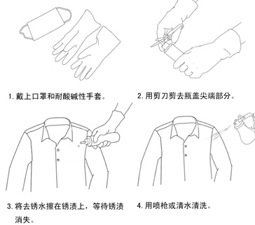此類產品適用于毛衫、恤衫、西褲、布匹、絲綢等,不損衣物,能快速清除衣物上的頑固銹漬和各種布料上的水跡及衣物上的頑固污漬。