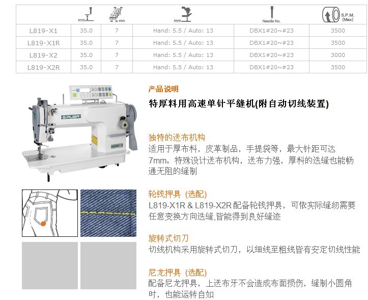 L819 特厚料用高速單針平縫機(jī)(附自動切線裝置)
