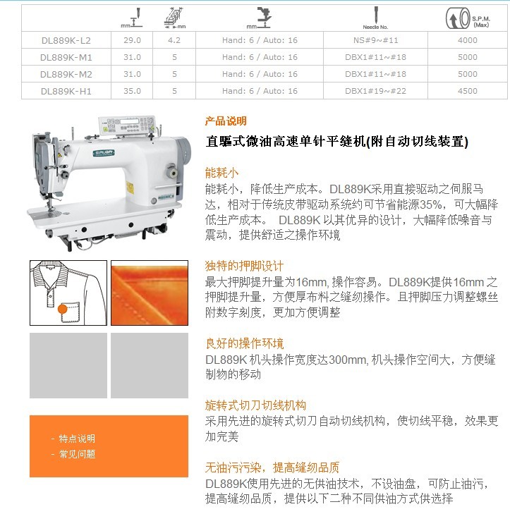 DL889K 直驅式微油高速單針平縫機(附自動切線裝置)