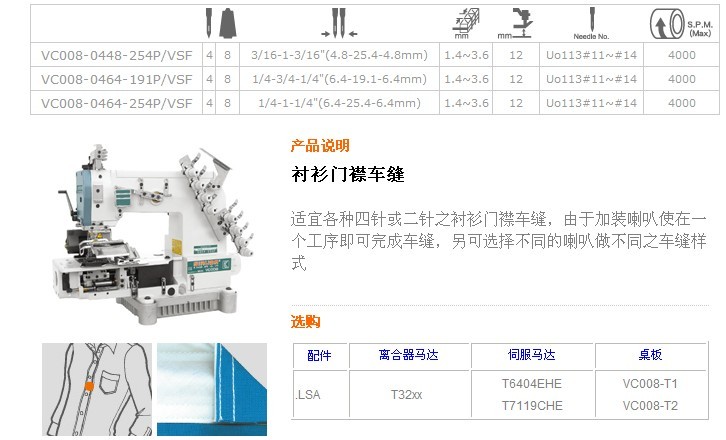 VC008-0448-254P/VSF,VC008-0464-191P/VSF,VC008-0464-254P/VSF 襯衫門襟車縫