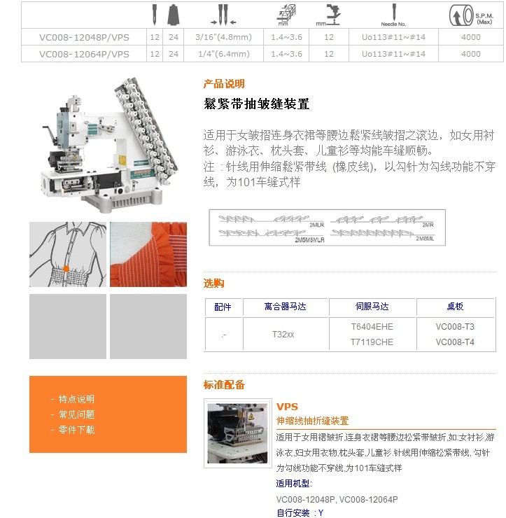 VC008-12048P/VPS,VC008-12064P/VPS 鬆緊帶抽皺縫裝置打褶機