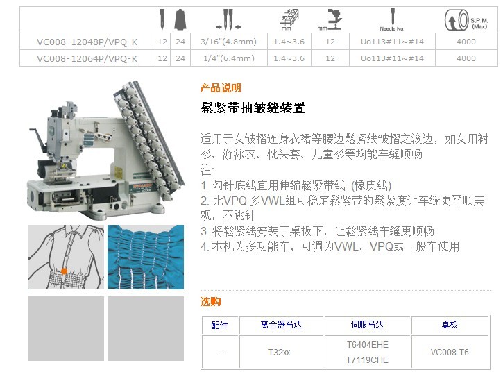 VC008-12048P/VPQ-K,VC008-12064P/VPQ-K 鬆緊帶抽皺縫裝置打褶機