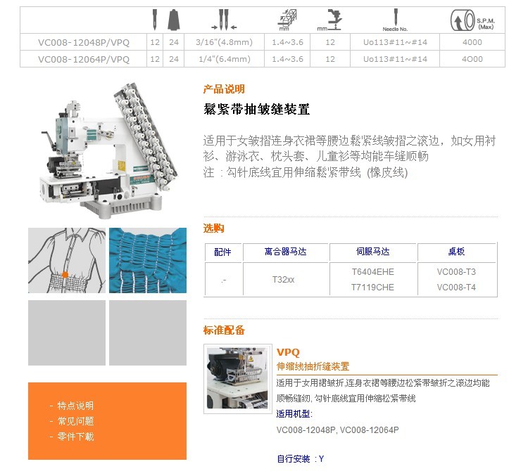 VC008-12048P/VPQ,VC008-12064P/VPQ 鬆緊帶抽皺縫裝置打褶機
