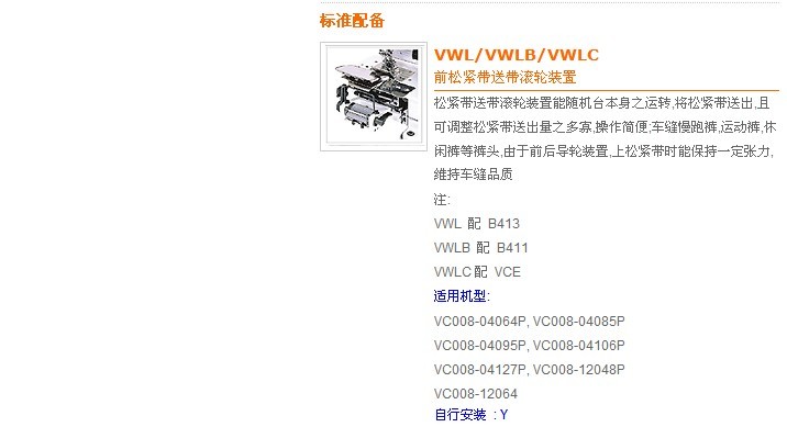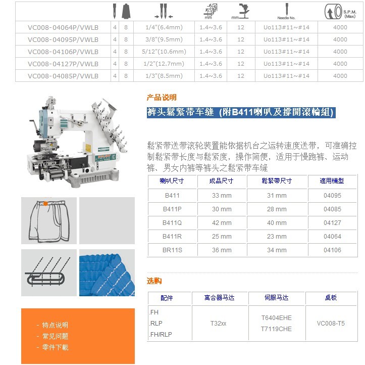 VC008-04064P/VWLB,VC008-04095P/VWLB,VC008-04106P/VWLB,VC008-04127P/VWLB,VC008-04085P/VWLB 褲頭鬆緊帶車縫 (附B411喇叭及撐開滾輪組)