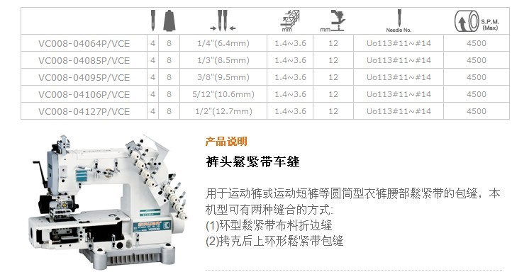 VC008-04064P/VCE,VC008-04085P/VCE,VC008-04095P/VCE,VC008-04106P/VCE,VC008-04127P/VCE 褲頭鬆緊帶車縫
