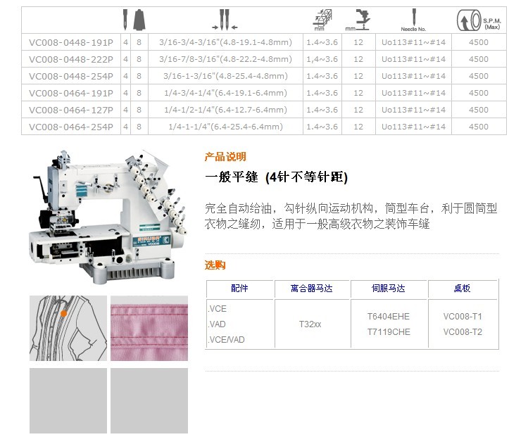 VC008-0448-191P,VC008-0448-222P,VC008-0448-254P,VC008-0464-191P,VC008-0464-127P,VC008-0464-254P 一般平縫 (4針不等針距)