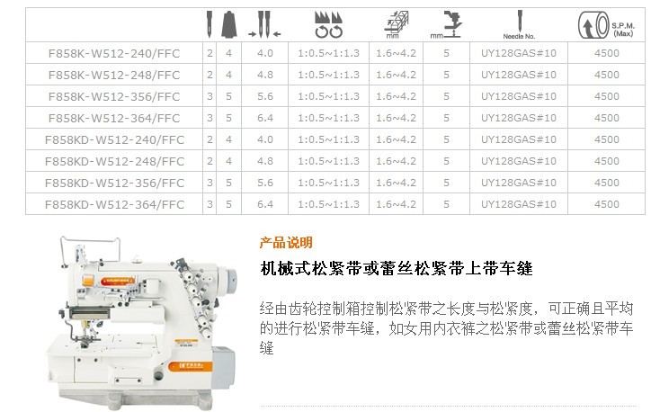F858K-W512,F858KD-W512 機(jī)械式松緊帶或蕾絲松緊帶上帶車縫