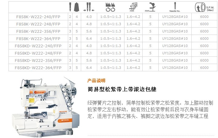 F858K-W222,F858KD-W222 簡易型松緊帶上帶滾邊包縫