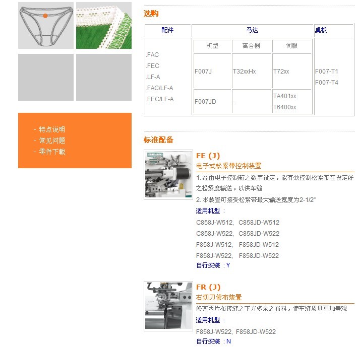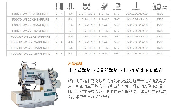 F007J-W522,F007JD-W522 電子式鬆緊帶或蕾絲鬆緊帶上帶車縫附右切修布