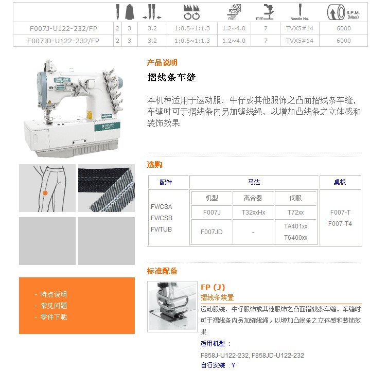 F007J-U122-232/FP,F007JD-U122-232/FP 摺線條車縫