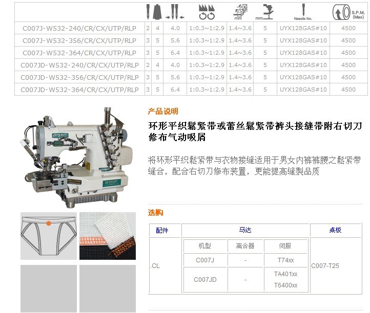 C007J-W532,C007JD-W532 環形平織鬆緊帶或蕾絲鬆緊帶褲頭接縫帶附右切刀修布氣動吸屑