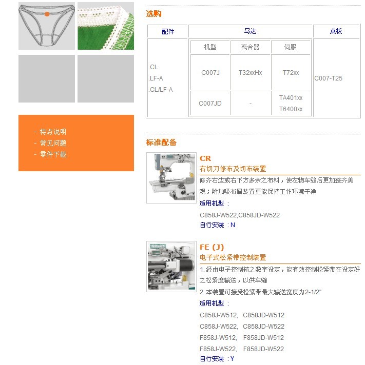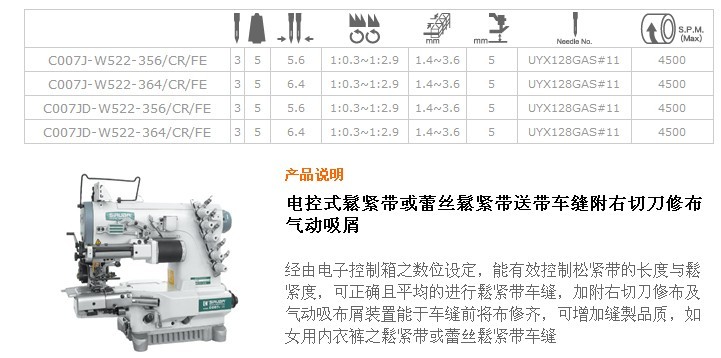 C007J-W522,C007JD-W522 電控式鬆緊帶或蕾絲鬆緊帶送帶車縫附右切刀修布氣動吸屑