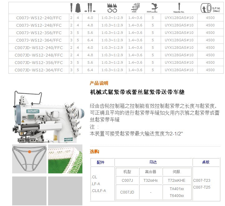 C007J-W512,C007JD-W512 機械式鬆緊帶或蕾絲鬆緊帶送帶車縫